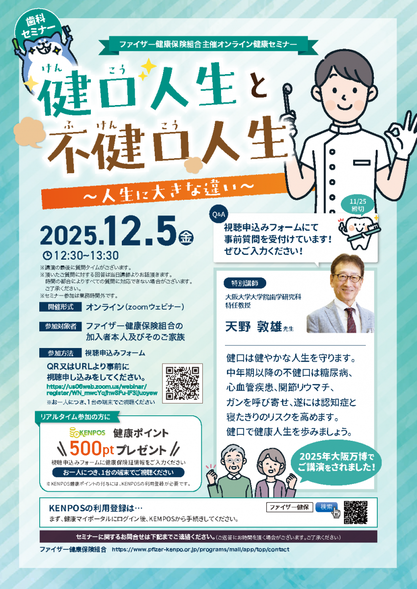 12/5(金)オンライン歯科セミナー「健口人生と不健口人生」※リアル視聴ポイント付与